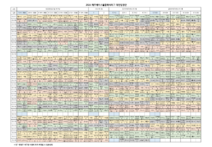2026 제주베이스볼클래식리그 대진일정(안)